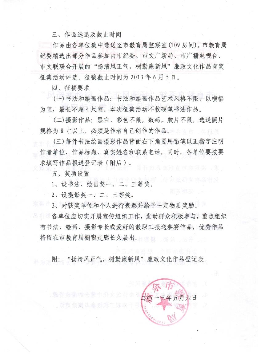 市直教育系统“扬清风正气,树勤廉新风”廉政文化作品有奖征集活动启事