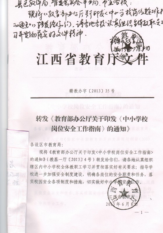 江西省教育厅转发教育部办公厅关于印发中小学校岗位安全工作指南的通知