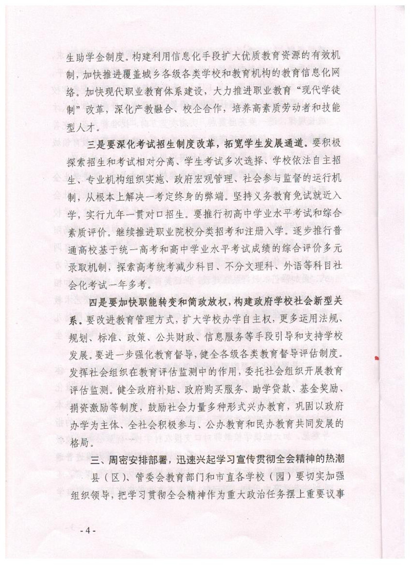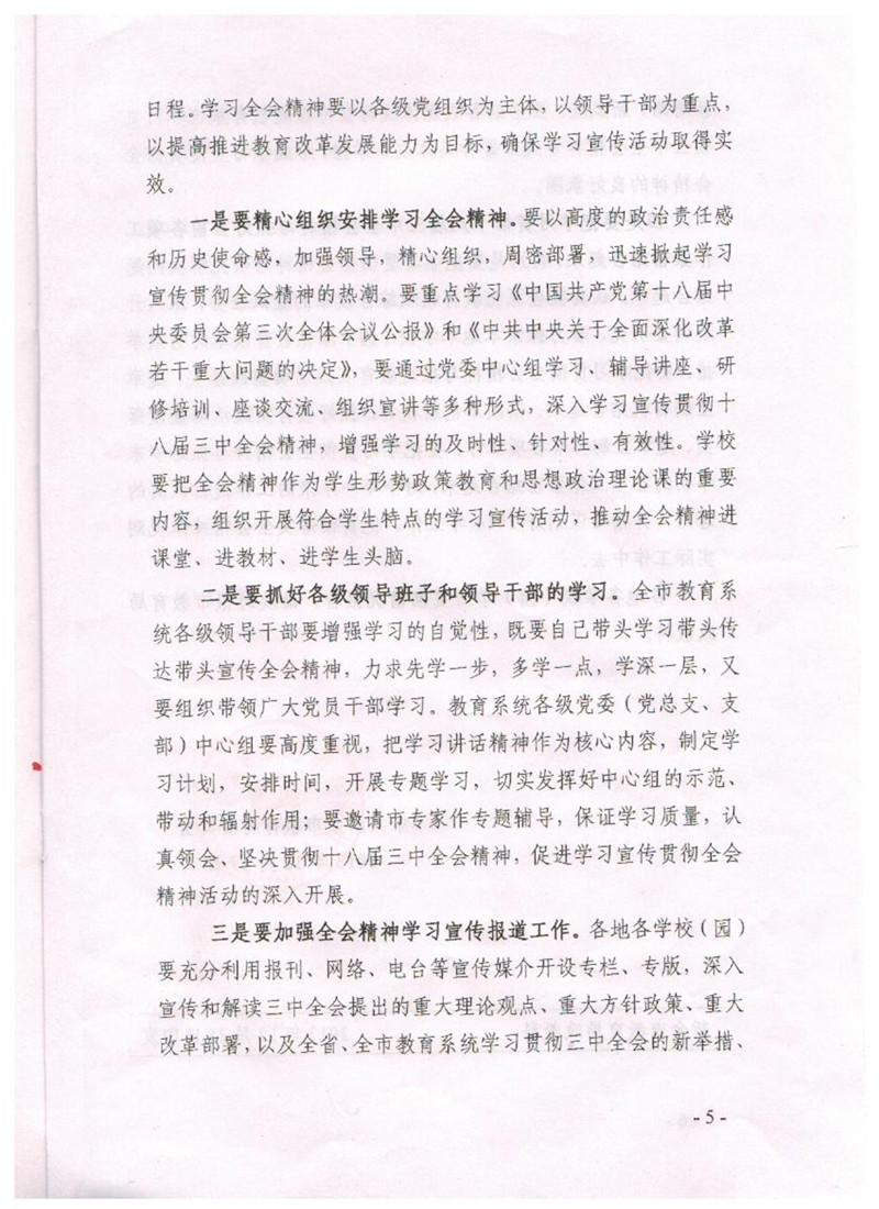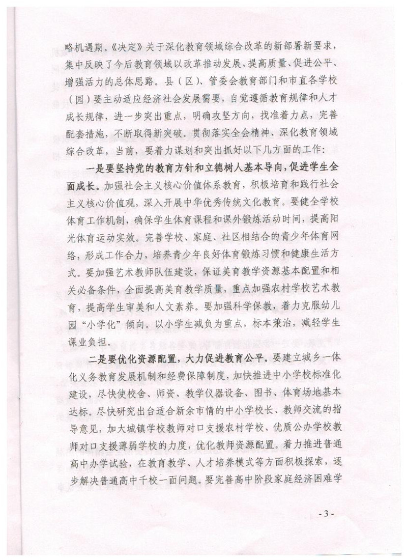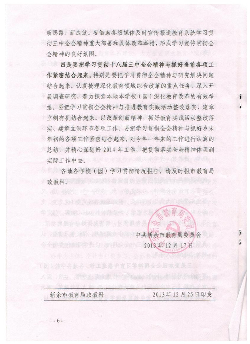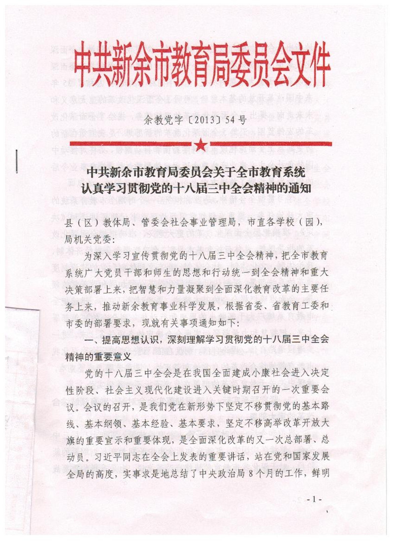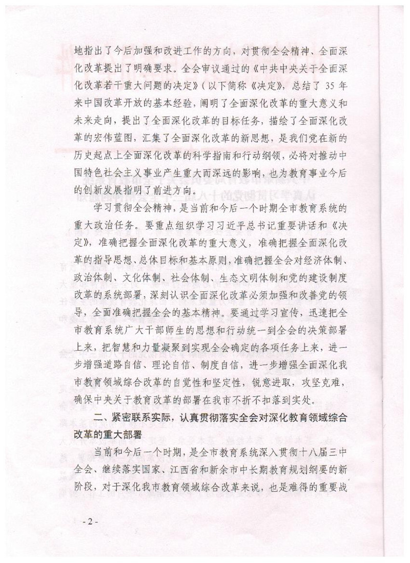 中共新余市教育局委员会关于全市教育系统认真学习贯彻党的十八届三中全会精神的通知