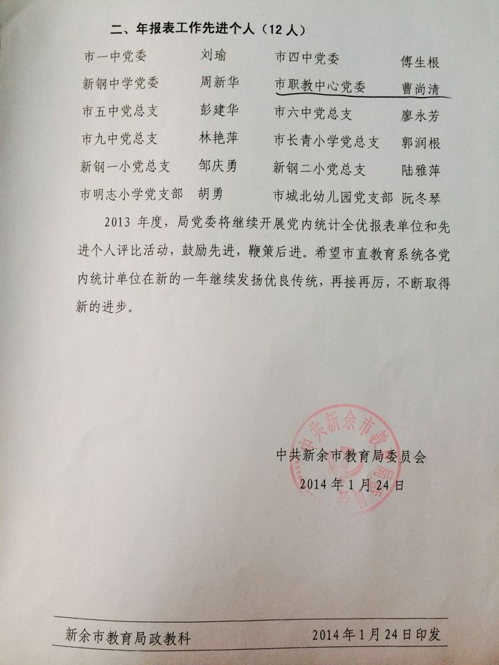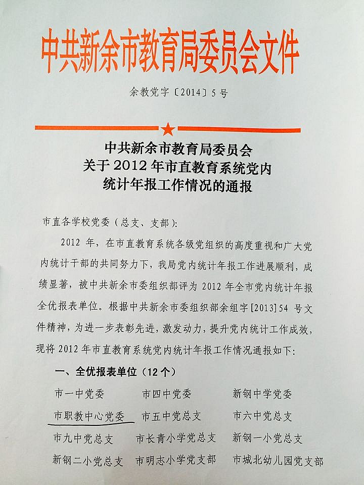 中共新余市教育局委员会关于2012年市直教育系统党内统计年报工作情况的通报