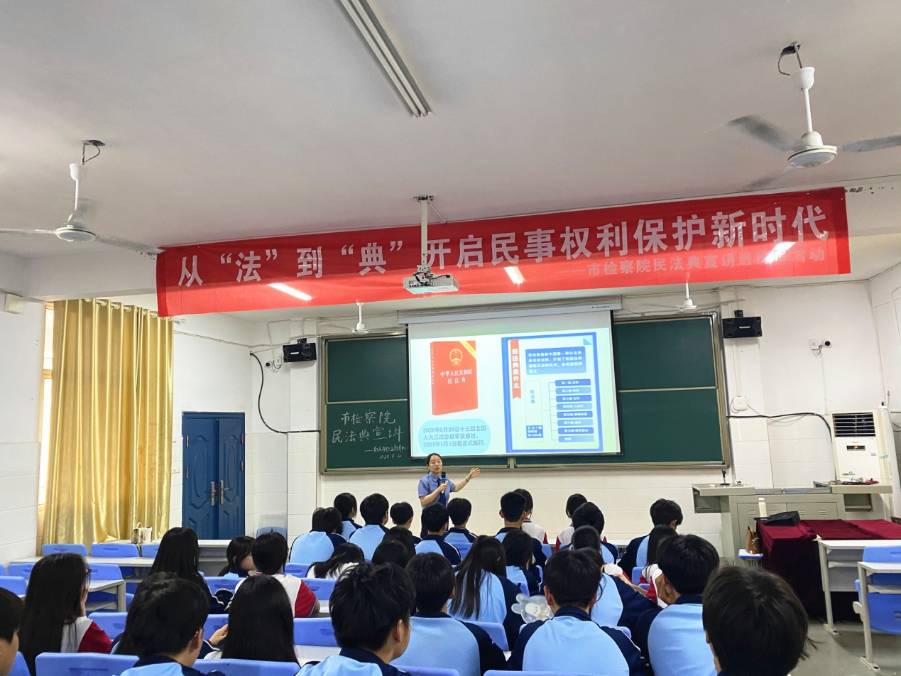 今年5月是《中华人民共和国民法典》施行以来的第四个“民法典宣传月”。为弘扬法治精神,增强学生法治意识,5月30日下午,市职教中心邀请法治副校长夏添来校开展《民法典》专题讲座,为学生们带来一堂生动的法治教育课。