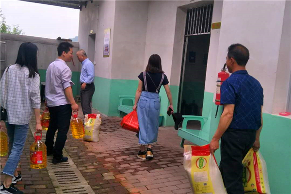罗沙村村支书邓斌对志愿者们的到来表示欢迎和感谢,并简要介绍了罗沙村颐养之家的情况。老人们看到志愿者们特别高兴,连忙起身欢迎。志愿者的到来让原本只有七个老人的院子变得热闹起来,志愿者们为老人们送上大米、食用油、面条等慰问品,带去了关怀和祝福,希望老人们能够平安康健。
