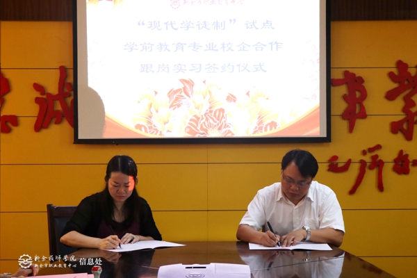 随后,刘焦华校长分别与新余市大风车教育集团、新余市银河幼儿园、新余市贝贝幼儿园签订了《“现代学徒制”试点校园(企)合作跟岗实习协议书》,将共建学前教育专业学生实践基地,互聘学前教育专业教师,共培学前教育专业学生。