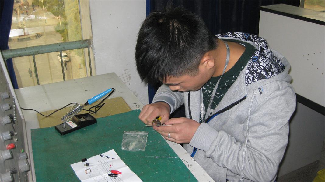 为促进我校电类专业学生对常用电子产品制作工具的应用、电子产品加工方法和工艺的操作、电子仪器仪表的使用,推动电类专业开展教学改革,加快电子产品制造技能应用型人才的培养。电工(物理)教研室于124日下午4:305:10,在学校507实训室举办电子产品制作大赛。来自11级高考电子班、12级高考电子班、13级电气自动化班的20名优秀选手经过紧张的比赛都完成了电子产品的制作,赛后经邓刚、张智军、刘强三位评委老师的认真评选,共评选出7名优秀选手,其中一等奖一名,二等奖二名,三等奖四名,获奖名单如下: