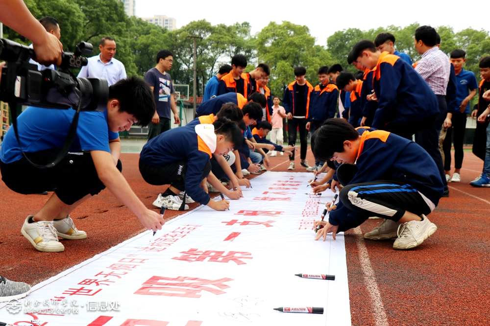 随后,“拒吸第一支烟,做不吸烟新一代”宣誓活动在校运动场举行,活动由新余市教育局副调研员廖小余主持,市卫健委党委委员、副主任程文辉围绕今年“世界无烟日”的主题做了讲话,他表示要加大控烟宣传和健康教育工作力度,营造全民参与的控烟氛围,动员公众宣传烟草危害,全面推进健康促进工作,进一步提高未成年人对烟草危害的认识,打造健康、无烟的校园环境。我校学生17级模具1班蒋雨哲同学作为代表宣誓,要珍爱生命,远离烟草,拒绝诱惑,做一个积极阳光、充满活力,有理想、有担当的新时代好学生。