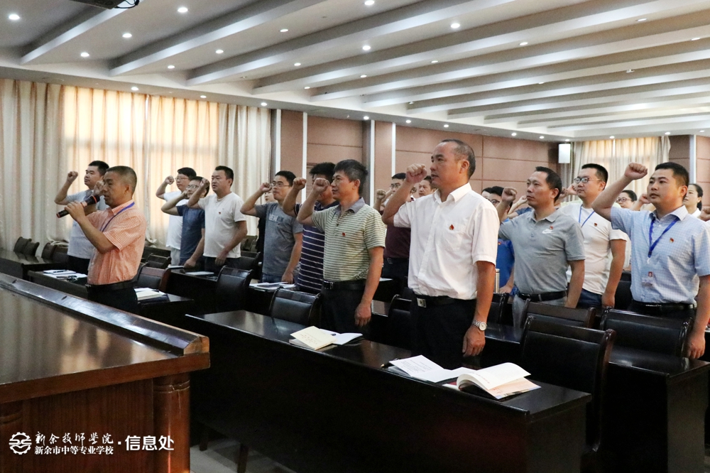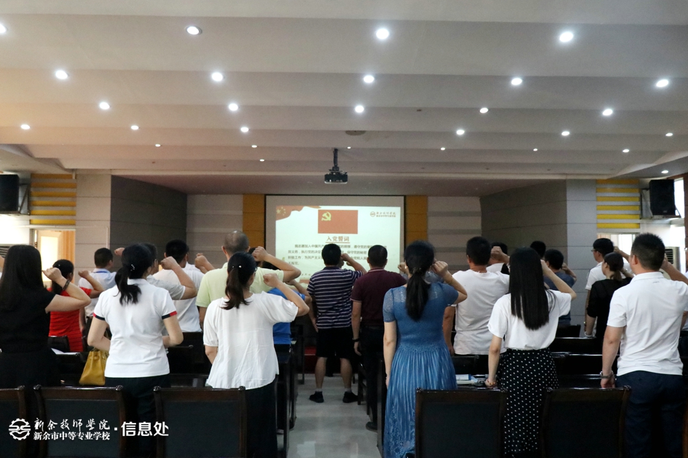 “我志愿加入中国共产党,拥护党的纲领,遵守党的章程……” 铿锵的宣誓声响彻会场。在校长胡浩然同志的领誓下,所有与会党员高举右手,重温入党誓词。