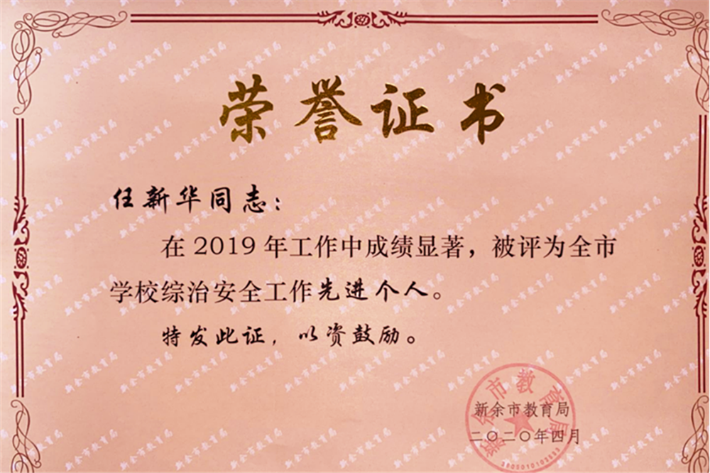 我校教师荣获2019年度全市优秀保卫干部、全市学校综治安全工作先进个人
