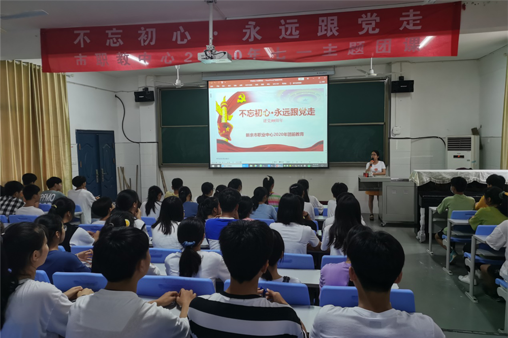 为庆祝中国共产党建党99周年,加强入团积极分子团前教育,增强青少年对共产党的认识,7月1日下午,市职教中心团委举办了“不忘初心·永远跟党走”主题团课活动,本次团课由学校团委老师林露主讲,学校2020年155名入团积极分子到场聆听。