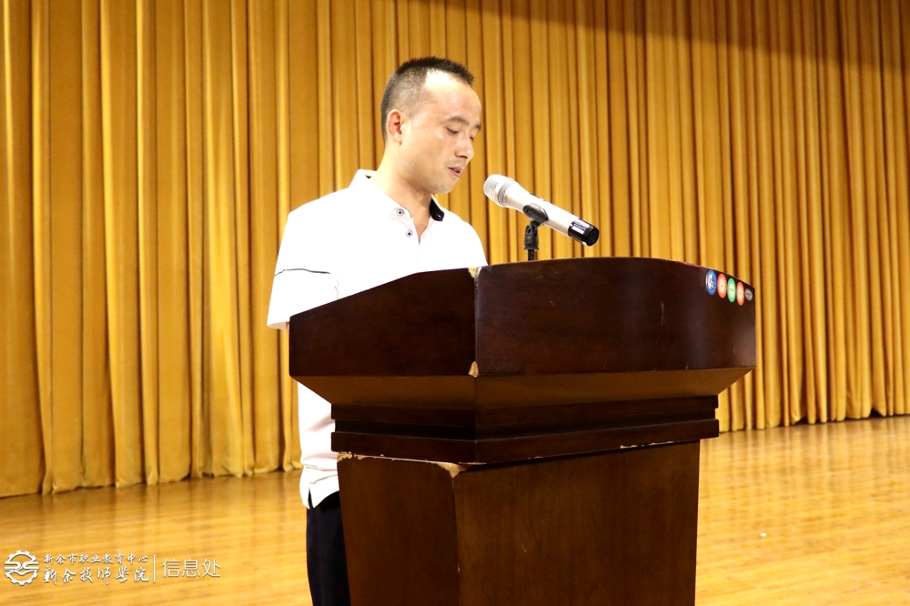 接下来,大会进行了新教师入职宣誓,在副校长李峰的带领下,25名新入职教师在主席台前进行了庄重的宣誓。