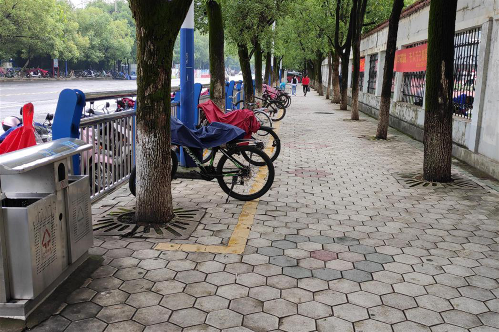 今年约800余名2020级秋季新生进入学校,其中大部分都是住在城区附近的走读生,很多学生都是骑电动车或自行车来学校。由于校园内的停车位置有限,为了图方便很多同学将自己的车辆停放在校园外马路上,给交通安全带来了较多隐患,也给其他行人通行造成不便。