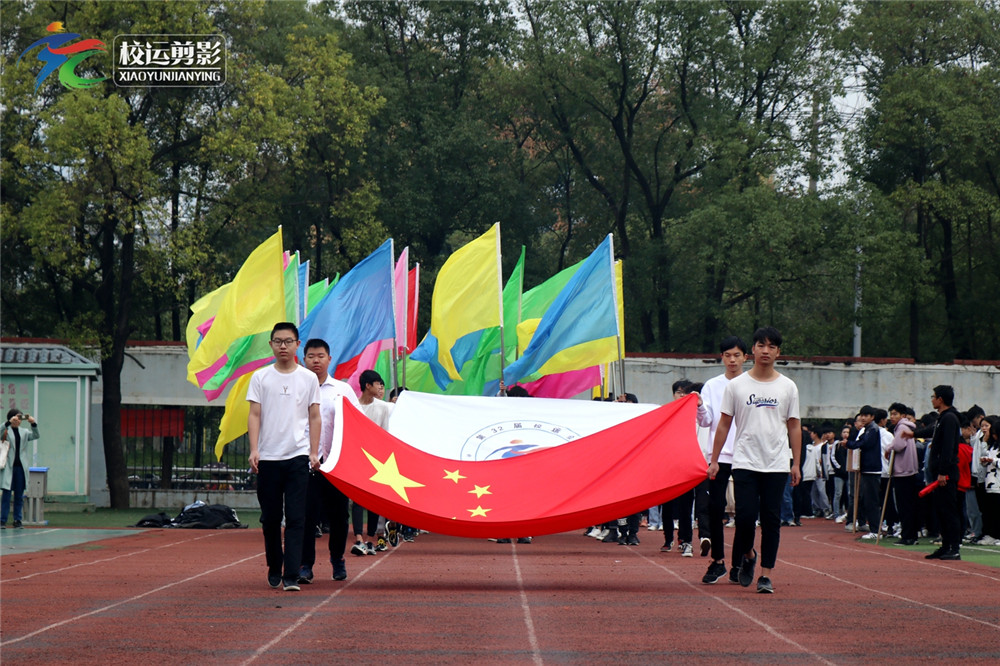 上午八时,学校呈现一幅幅灵动的画面,彩旗招展,绿茵含笑,在激扬高昂的旋律声中,彩旗队、会徽队踏着整齐的步伐经过主席台接受检阅,队伍井然有序、脚步铿锵有力。77支班级方阵紧随其后,同学们个个精神抖擞、激情昂扬地走过主席台,一展班级风采;表演队同学们青春活力;裁判员们笑容可掬,形成一道道美丽的风景线。