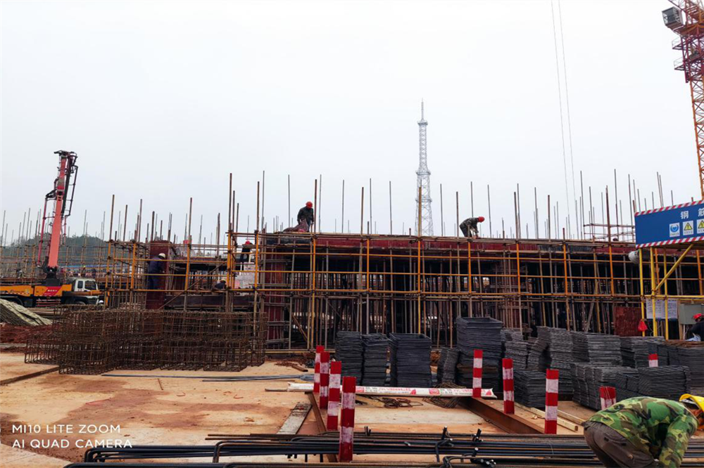 从项目部了解到目前正在施工的有4号实训楼2层楼面施工、3号实训楼桩基础施工、1号综合楼人防(地下停车场)土方施工、9号10号学生宿舍已封顶现内部砌墙水电施工、8号学生宿舍桩基础抽芯作业、7号食堂螺旋桩机施工刚结束、5号6号学生宿舍楼2-3层施工。
