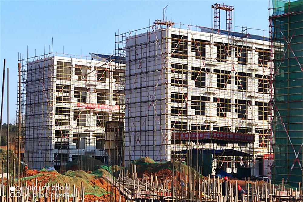 5号学生宿舍局部封顶,下一步混凝土浇筑屋顶