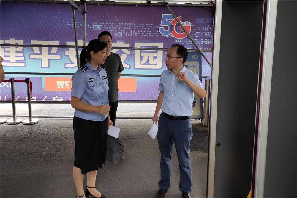 6月16日上午,北湖派出所一行两人来市职业教育中心对接检查全省校园安防“四个一”工程建设,分管安全工作宋兵主席与保卫处全体人员陪同。