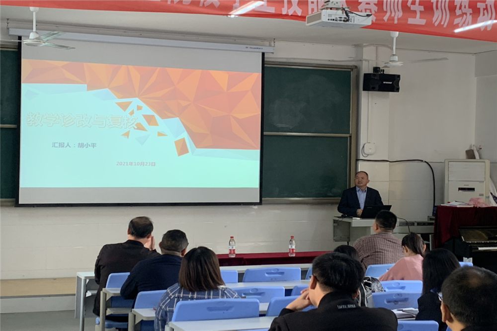 为不断优化我校教学诊断与改进工作实施方案,顺利推进我校诊改复核工作,10月23日,新余市职业教育中心在教学楼B201召开诊改辅导专题讲座,讲座由副校长邹建峰主持,江西省诊改专委会秘书长胡小平主讲,处室负责人、诊改办、诊改联络干事、教研室主任及专业负责人参会。