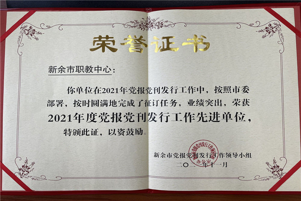 市职教中心荣获2021年度全市党报党刊发行工作先进单位