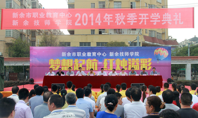 910下午,在第30个教师节,新余市职业教育中心全体师生齐聚学校灯光球场隆重举行2014年秋季开学典礼。在主席台就坐的领导有市教育局副局长廖春荣、市教育局职成科科长赖春明、市学生资助中心主任廖兴中、学校党政班子成员,会议由校党委书记胡浩然同志主持。