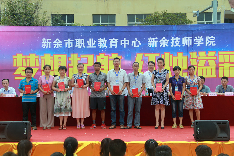2013-2014学年,学校教师共获国家级二等奖1个等多个比赛奖项,2人分别荣获新余市“十大名师”、新余市“十大金牌技师”称号。在省、市学生技能竞赛和“文明风采”竞赛中,共获得省级一等奖4个等多个奖项。今年79名同学参加天津职业技术师范大学单招高考,共录取本科44人、专科12人,录取率高达70.9%。近日,学校又再次获得“全国教育系统先进集体”荣誉称号,更是社会各界对市职教中心教育教学工作的肯定。