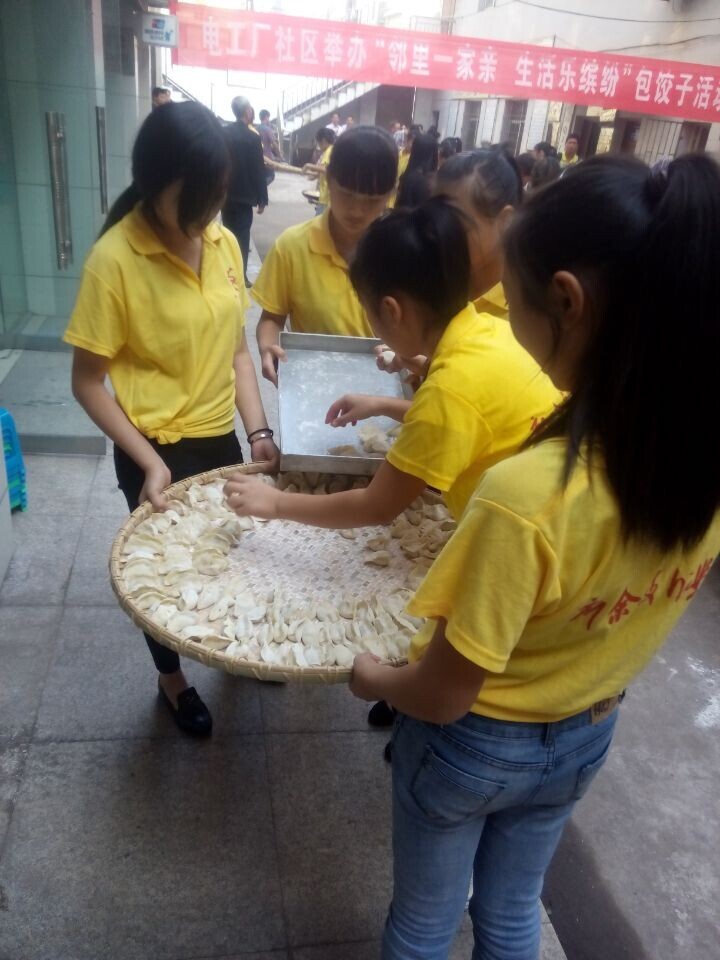 当天中午,我校志愿者和电工厂社区的老人共同包饺子、吃饺子。大家一起有说有笑,齐帮动手,很快包出数十盘鲜美的饺子。小志愿者们先后端上热腾腾的饺子送到爷爷奶奶手中,老人们吃着饺子,享受着大家的关爱,感受着浓浓的亲情。