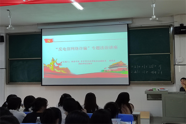 为加强我校法治宣传教育,更好维护我校未成年人合法权益,培养学生法治意识,进一步推进新余市“平安新余建设”工作,我校联合新余两级法院积极开展“未成年人保护工作宣传月”活动。5月30日,新余市法院法治副校长团队携手市法院刑二庭法官赴我校开展电信网络诈骗宣讲活动。
