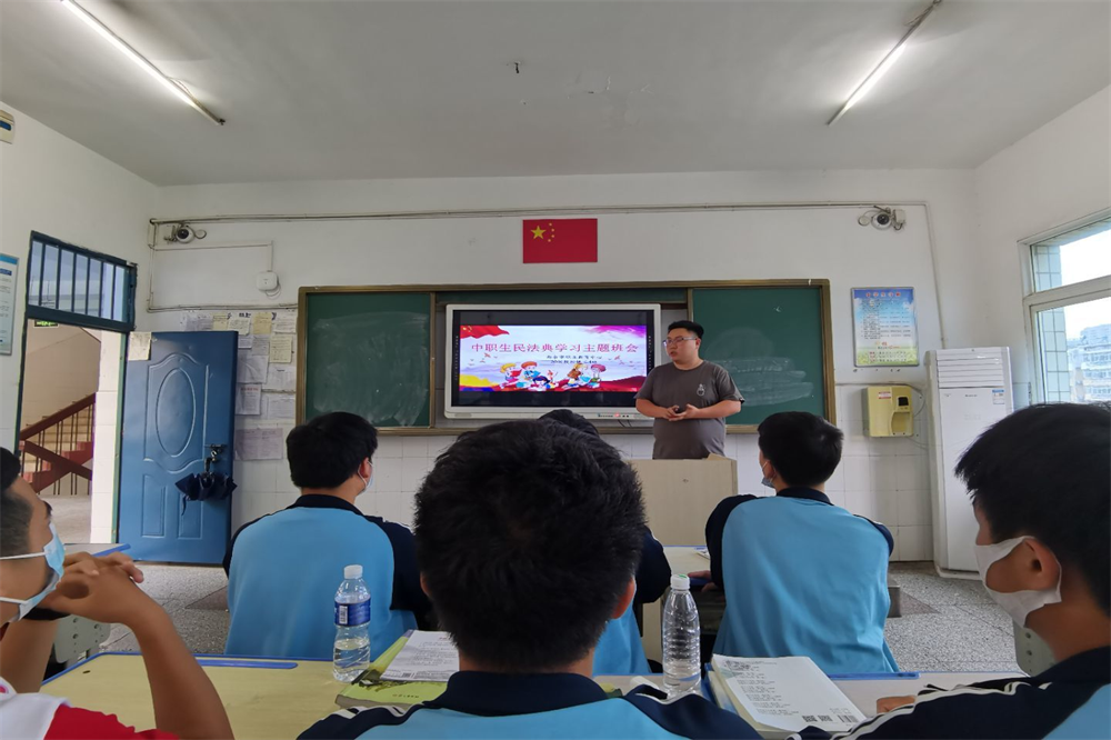 为认真贯彻落实中央全面依法治国工作会议精神,深入学习宣传贯彻习近平法治思想特别是习近平总书记关于民法典的重要指示批示精神,在学生处的组织下,新余市职业教育中心各班于5月31日下午开展了“美好生活·民法典相伴”主题班会活动。