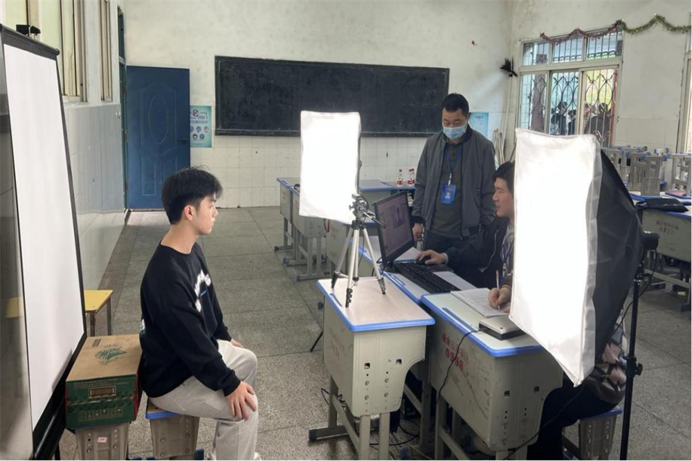上午7点55,渝水区教体局招考办领导与工作人员来到了教务处布置好的场地,在布置并调试完采集机器后,班级学生按照教务处安排的班级学生顺序,有条不紊的进入场地,依次进行考生信息确认,考生人脸采集,考生号录入等工作,确保所有考的生信息真实准确。
