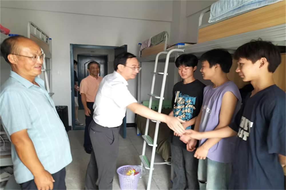 “住的怎么样?” “有没有热水洗澡?”“还习不习惯?” 在学生公寓,他与学生交谈,详细询问了学生目前的学习、生活等状况。他查看了寝室配套设施情况,了解了宿舍管理、环境卫生、安全用电等日常工作开展情况,强调一定要为学生创设良好的生活住宿环境。