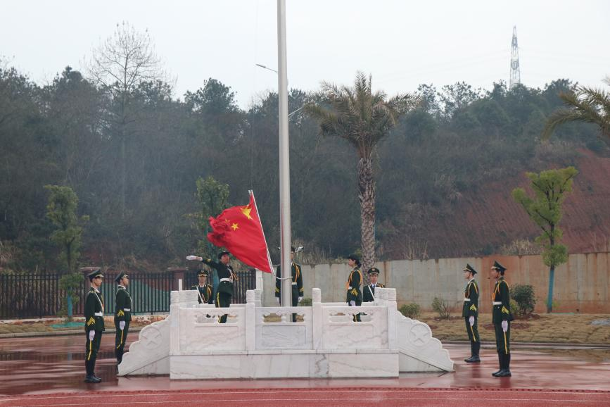 随着庄严的国歌,五星红旗缓缓升起,全体师生严肃伫立。在鲜艳的五星红旗下,同学们以饱满的姿态迎接新学期、新起点、新征程。