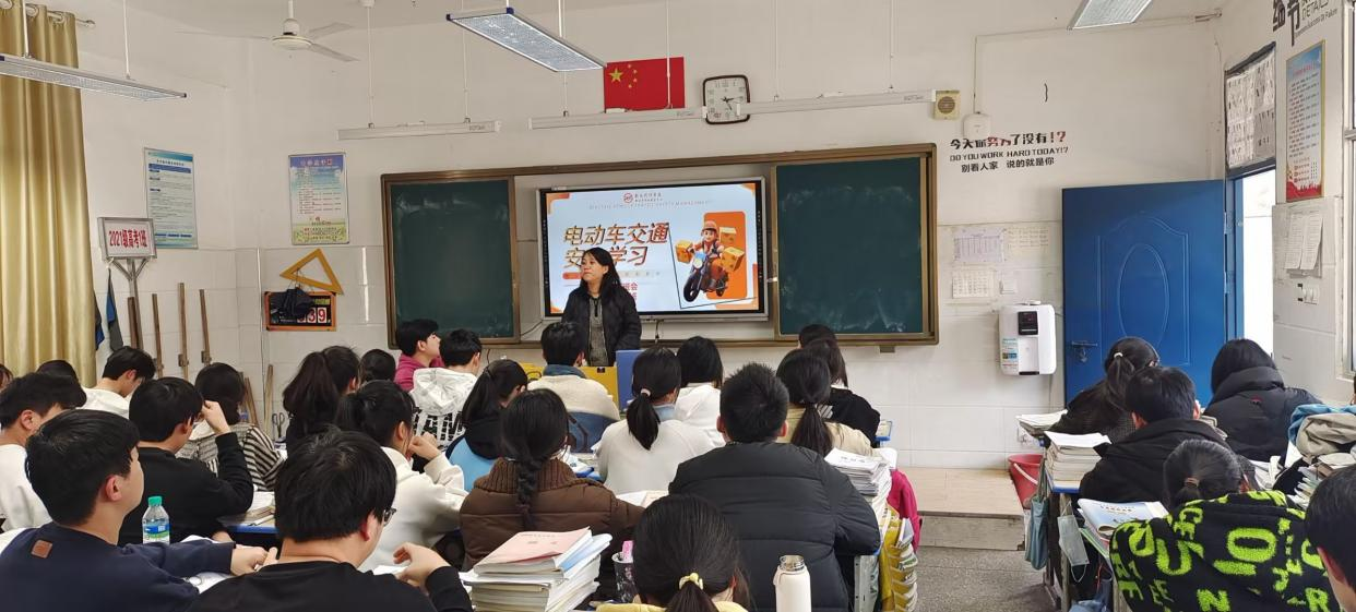 在主题班会上,各班主任围绕电动车3禁1罚、电动车使用及通行规定、电动车安全行车注意事项等方面来开展。随后,班主任从电动车隐藏危害、电动车安全使用注意事项等多个方面,强调遵守交通规则和正确使用电动车的重要性,尤其是上下课学校出行高峰期,务必遵守交通规则,必须佩戴好头盔,不载人上路,不开无牌电动车。最后班主任特别强调电动车的安全使用注意事项,一要选购正规厂家生产的合格电动车、充电器和电池,不要私自改装电动车及其配件;二要正确充电,不要私拉乱接电源线路;三要停放得当,应停放在安全地点,不要停放在楼梯间、疏散通道、安全出口处,不要占用消防通道。