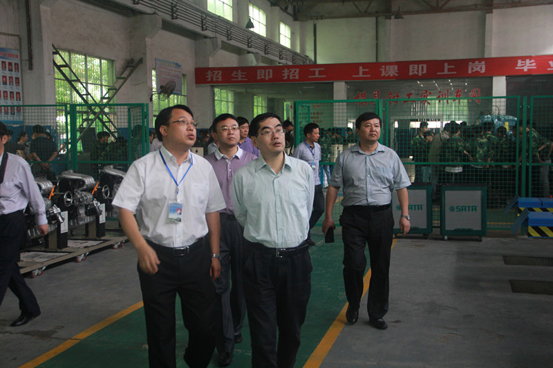 汤建人一行在刘焦华校长及其余校领导班子的陪同下,察看有关教学设施,了解学校教学状况,对我校现代职业教育所取得的成就给予了充分肯定。
