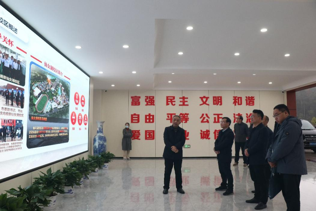 调研期间,胡书记向调研组一行详细介绍了我校的整体办学情况。随后,调研组一行参观了仙女湖校区实训基地,听取了实训基地建设背景、管理模式、目前使用情况等方面的介绍。调研组对我校在职业教育领域取得的成绩给予高度评价。