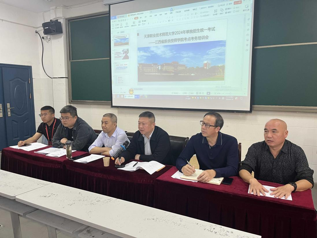 为保证考试的顺利开展,4月19日下午2点40分,我院召开2024年天津单招考试考务会。会议由院长任凤生主持,天津带考教师、省人社厅技校管理处有关领导参会,确保所有考务事项有条不紊地进行。会上,考务组组长、院教务处负责人闵文群对全体人员进行考前培训,依据考务手册,从前期环境营造、考场准备、考试违禁物品检查、人脸身份校验及考试组织流程中从领卷签到、到达考场、组织考生入场、启封试卷、指导学生涂答题卡、宣读考场纪律、核验证件、处理缺考试卷、收卷清点密封等多个流程及时间节点进行详细说明。省人社巡考领导指出,本次考试的顺利开展,离不开新余技师学院所做的大量前期准备、更离不开所有考务人员的大力配合,所有工作人员一定要充分认识高考工作的重要性和严肃性,遵守纪律、服从安排,认真做好各项工作。