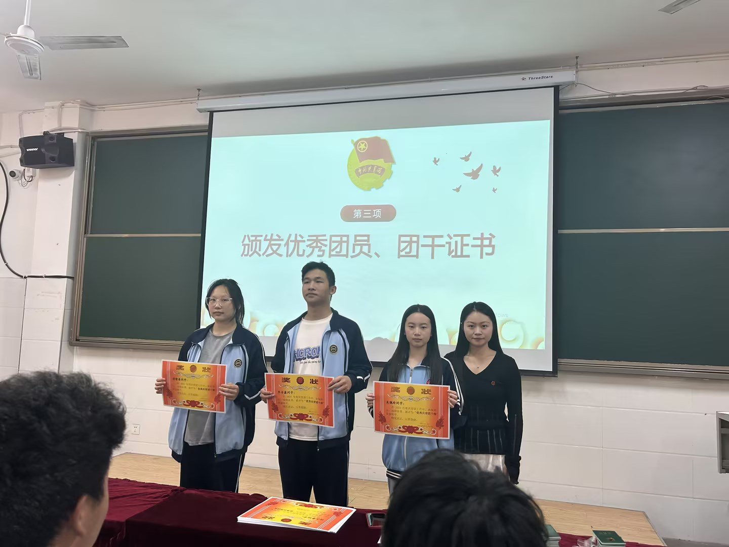 最后,团委书记黄裕嘉老师表达了对获奖集体与个人的祝贺,充分肯定了学校团员青年们在过去一学年度取得的进步,并对广大青年团员提出三点希望。一是要坚定理想信念,擦亮团旗底色;二是要培养高尚品行,夯实人生根基;三是要不负青春韶华,练就过硬本领。希望新老团员以本次表彰为新的起点,以先进典型为榜样,见贤思齐、奋发有为,珍惜时光、不懈奋斗,用智慧和汗水谱写无愧时代、不负韶华的青春之歌。