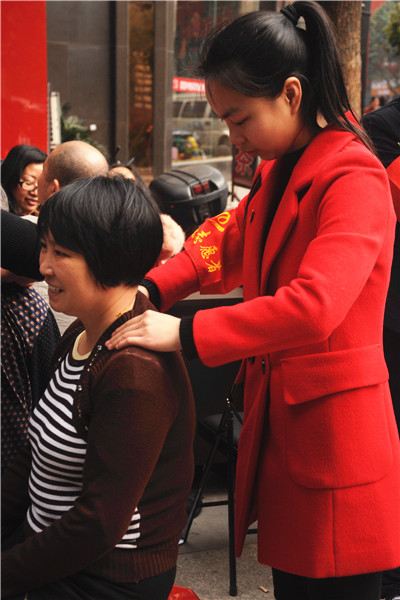 活动现场,我校电工电子专业傅拾生老师担任义务修理家用电器项目,居民们纷纷把需要维修的家用电器拿给傅老师修理。一位居民拿着一个陈旧的电热毯来到工作台前,她说这个电热毯用了很久,有感情了,前段时间坏了,正在犯愁到哪里去修,看到摆台就赶紧送来了。傅老师用专业仪器仔细检查后发现是线路连接问题,他检查出问题后很快修好电热毯。看着修好的电热毯居民脸上露出了开心的笑容。团员志愿者在整个活动现场维持秩序,与正在等位的老年人按摩聊天,向来往居民们介绍本次活动的服务项目,引导需要帮助的居民来到各个工作台前接受义务服务。