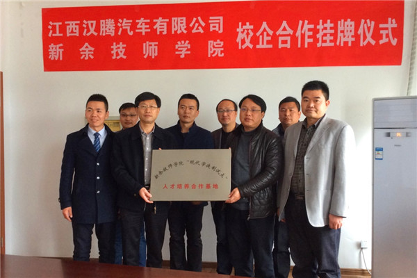 3月11日,新余技师学院与江西汉腾汽车有限公司“现代学徒制”试点校企合作协议在汉腾公司签订。校长刘焦华和汉腾公司董事长顾汤华代表校企双方签订了协议。