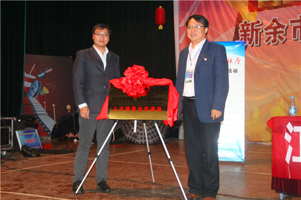 启动仪式上,副院长邹建峰简要介绍了江西汉腾汽车有限公司、江西省木林森光电科技有限公司、宁波方太集团有限公司等多家校企合作公司基本情况。随后,院长刘焦华分别与江西汉腾汽车有限公司企业代表刘景龙、新余优造智能科技有限公司企业代表吴嘉林为校企合作人才培养合作基地揭牌,并为学院汽修专业汉腾班授牌,由此拉开活动的帷幕。