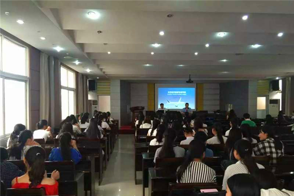 次日,在副校长邹建峰的陪同下,李天宇副院长在校图书馆五楼会议室对同学们进行了航空旅游服务专业方面的介绍和宣传动员。同学们表示出极大的兴趣,现场就有同学报名面试。此次签约仪式以及讲座的顺利举行意味着我校航空服务专业的正式启动。