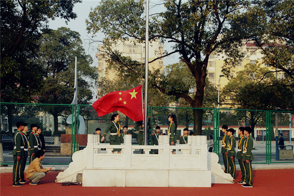 学校非常重视规范升旗礼仪教育,专门组建校国旗队,每月举行一次主题升旗仪式。通过主题升旗仪式教育,让学校师生在参与中感悟国旗的真谛和力量,增强了对国旗的礼敬感,做到把爱国之情内化于心、外化于行。