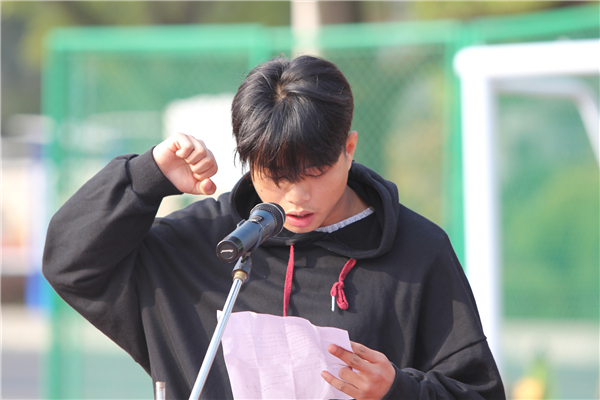 入场式结束后,全场肃立、奏唱国歌,副校长刘海林致开幕辞,他首先对精心筹备运动会的全体工作人员表示诚挚的谢意,随后分别对运动健儿们、裁判员及观赛同学们提出了要求,希望在本届运动会上职教学子能全面展现主动进取、刚健有为、蓬勃向上的精神风貌,取得比赛成绩和精神文明的双丰收。接着,裁判员张琳婧老师、运动员黎辉同学分别代表全体裁判员和运动员庄严宣誓。