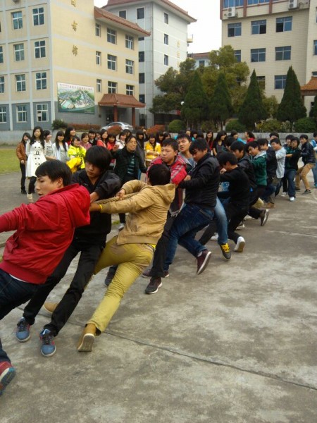 312日下午,我校数控和学前教育专业的同学在操场上以高涨的热情进行拔河比赛。