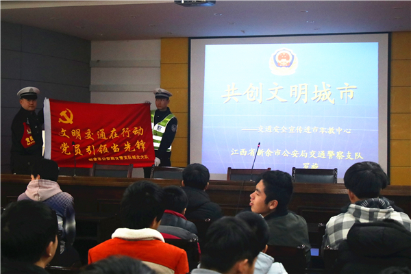 12月28日下午,市公安局先进事迹报告会及城北交警大队“文明交通在行动,党员引领当先锋”宣讲活动在我校图书馆五楼会议室举行,校保卫处、学生处组织了部分班级到场听讲。