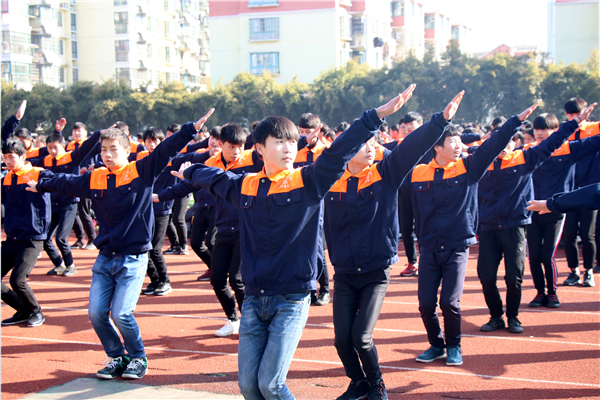 比赛中, 62个在校班级服装整齐划一、口号洪亮有力、动作规范整齐,同学们精神饱满、充满活力,一举一动无不彰显出职教学子积极进取、健康向上的良好风貌,协调统一的动作和团结协作的精神赢得了评委老师的高度赞扬。