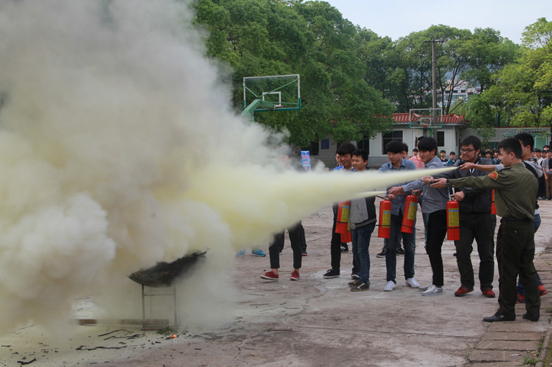 然后由学校保卫处钟主任给全体师生做了“提高消防意识,增强自救技能”的消防知识报告,再由消防大队的刘警官讲解了防火防灾常识并亲自演示了灭火器材的使用。最后在刘警官的指导下由部分教师和学生亲自实践操作灭火器材的使用,参与师生获得了良好的学习体验。