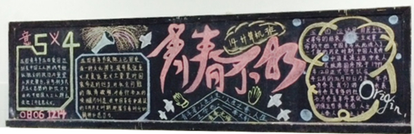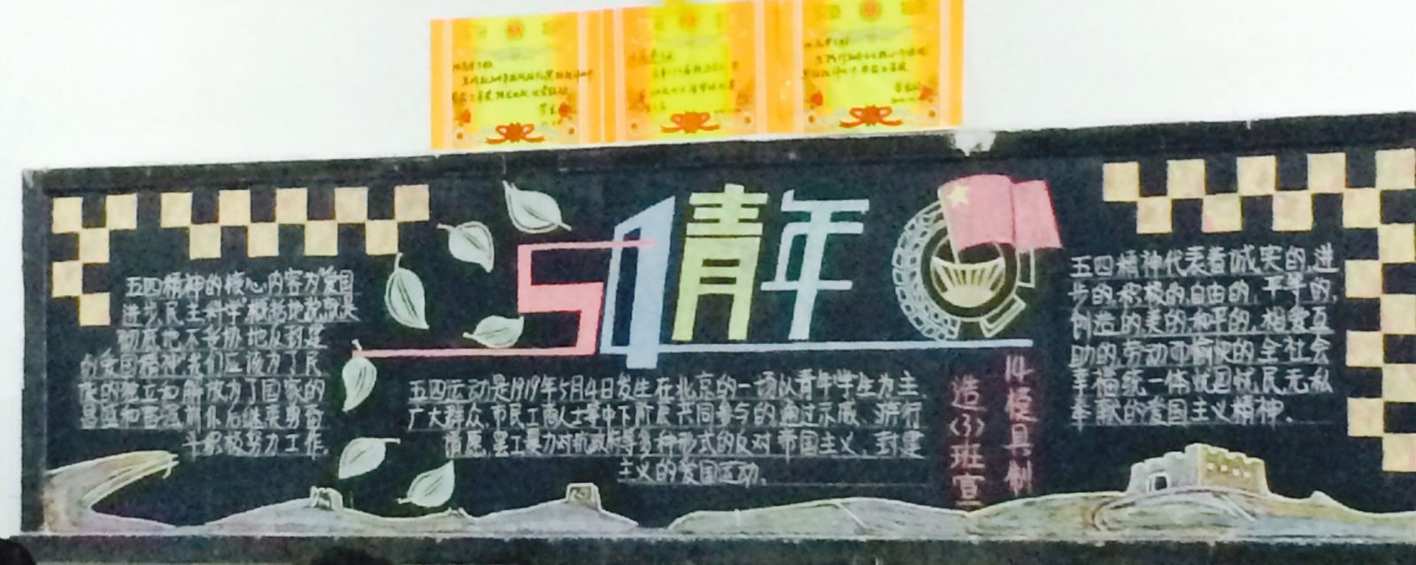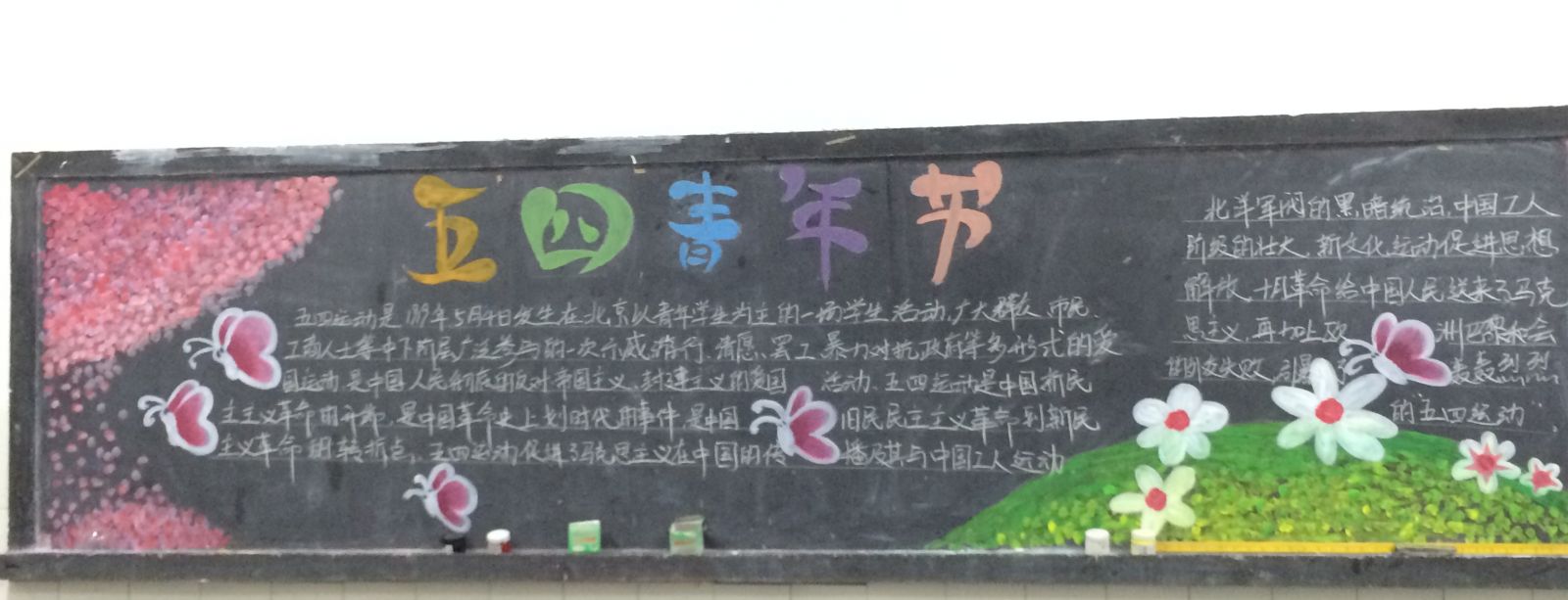 今年是中国共青团成立93周年、“五四”爱国运动96周年,为弘扬“五四”精神,营造良好的校园文化氛围,全面推行素质教育。近日,我校团委组织开展了以“五四精神我传承”主题黑板报评比活动。