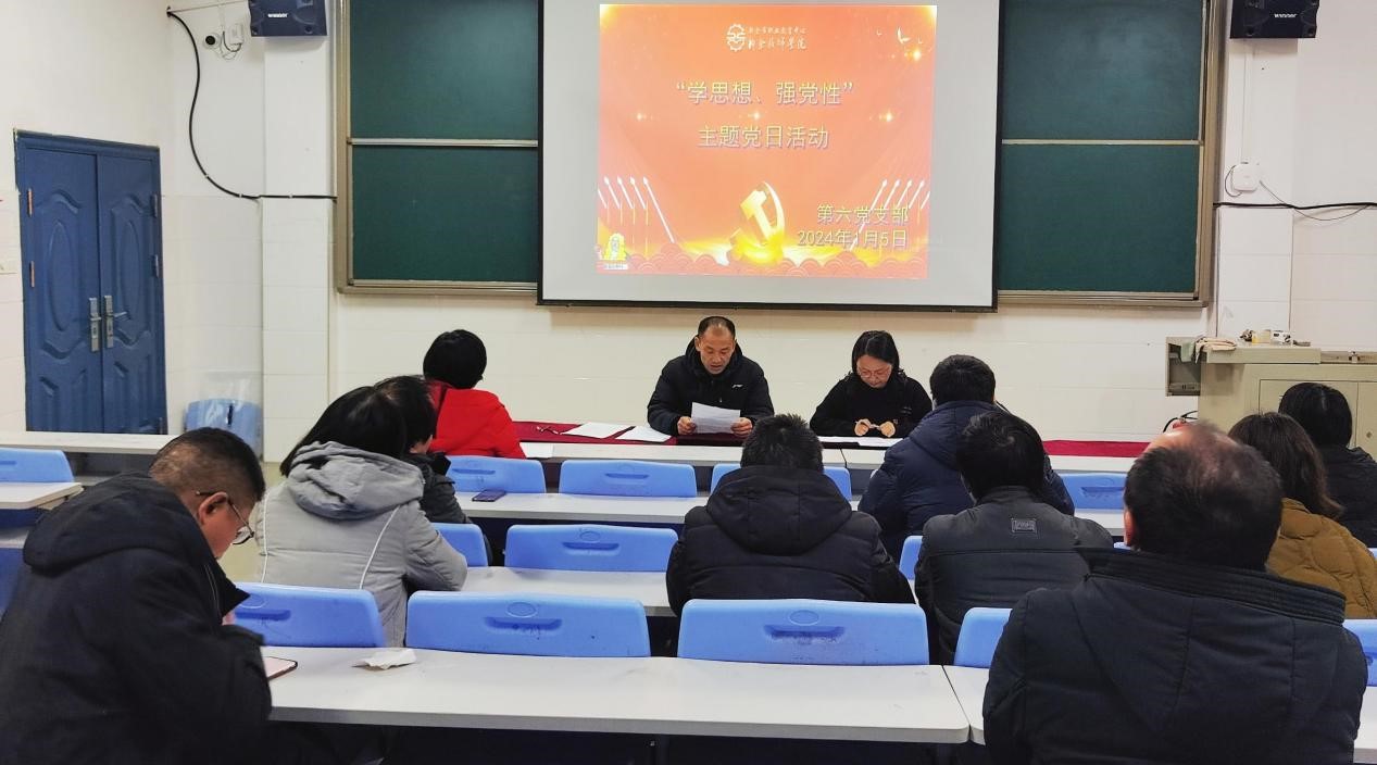 1月5日下午,市职教中心第六党支部在北湖校区教学楼B201开展2024年一月主题党日活动,会议由支部书记闵文群主持。