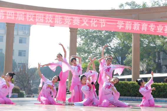 为响应学校第四届“校园技能竞赛文化节”,丰富学生的课余生活,提高学生的专业技能,11月29日上午,市职教中心学前教育专业在灯光球场举办了“舞蹈”比赛,比赛考核的是学生舞蹈基本功技能技巧以及群舞表演技巧方面掌握的情况。