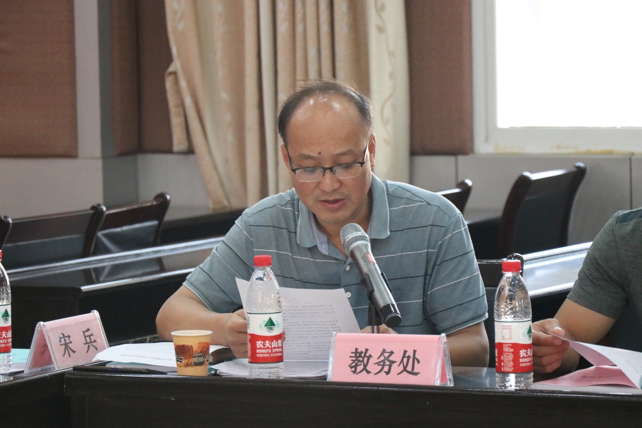 会上,教务处主任喻青勇向大家汇报了教学工作委员会成立一年来的工作开展情况。他从制定和完善专业人才培养方案、对接部颁标准、规划专业建设、强化制度建设、教学诊改持续推进、加强教学常规管理、加大重点专业设施投入及存在的不足七个方面作了汇报。