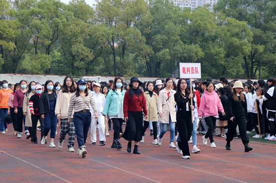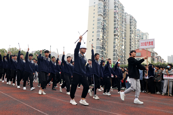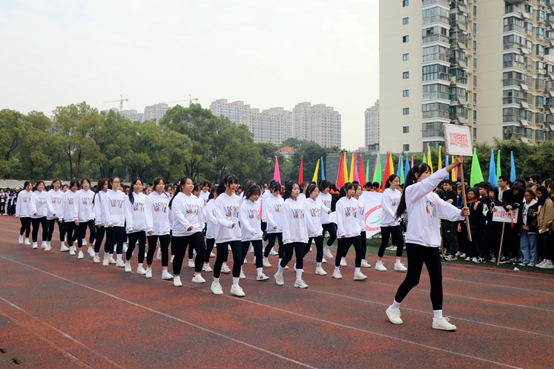 由各个班级组成的方阵紧随其后进入,他们英姿飒爽,他们意气风发,他们喊着整齐划一口号一展班级风采,他们代表了职教中心学子对此次运动会的高度关注与热情。
