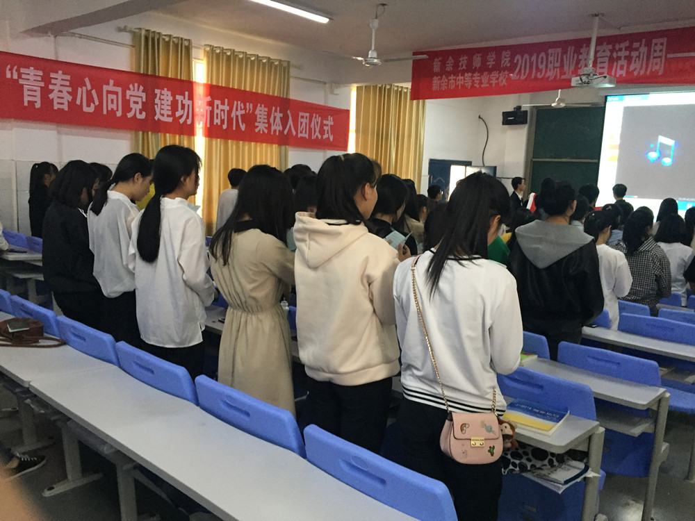 为从严入团程序,市中专团委于5月10日下午,在校B201阶梯教室举行“青春心向党·建功新时代”纪念五四运动100周年集体入团仪式。学校150名新发展团员参加了集体宣誓仪式。
