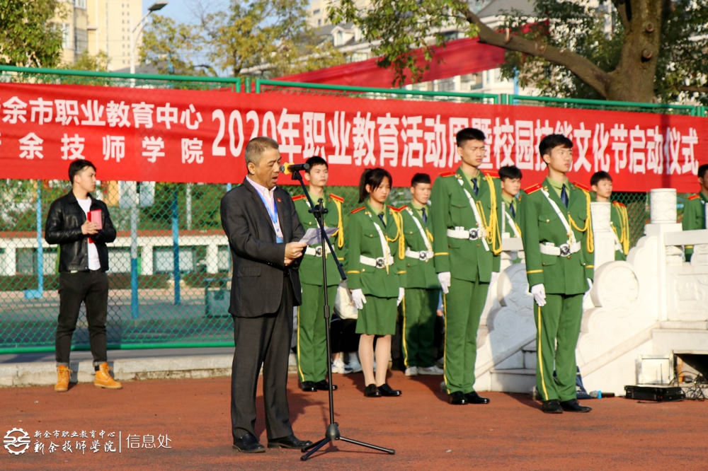 11月9日,新余市职业教育中心(新余技师学院)2020年职业教育活动周暨校园技能文化节启动仪式在校运动场隆重举行,全校4000余名师生共同参与,校长胡浩然致辞并宣布开幕。